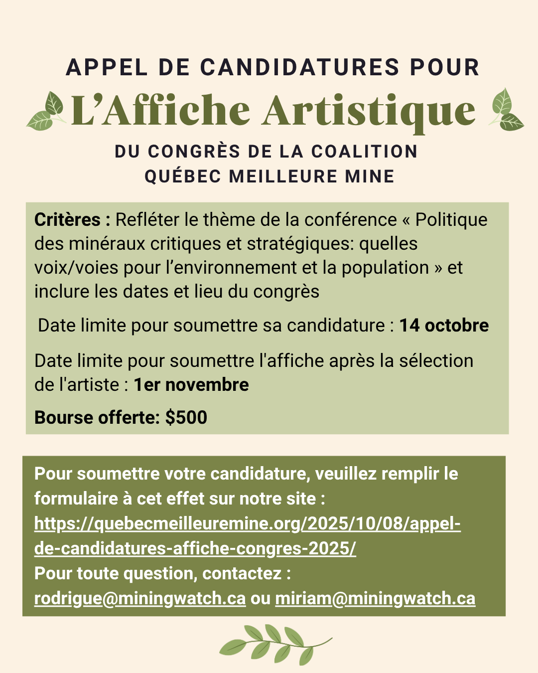 Pour un Québec sobre en matériaux qui priorise la protection de l’environnement et le respect des communautés dans toute la chaîne de production et d’utilisation des minéraux.